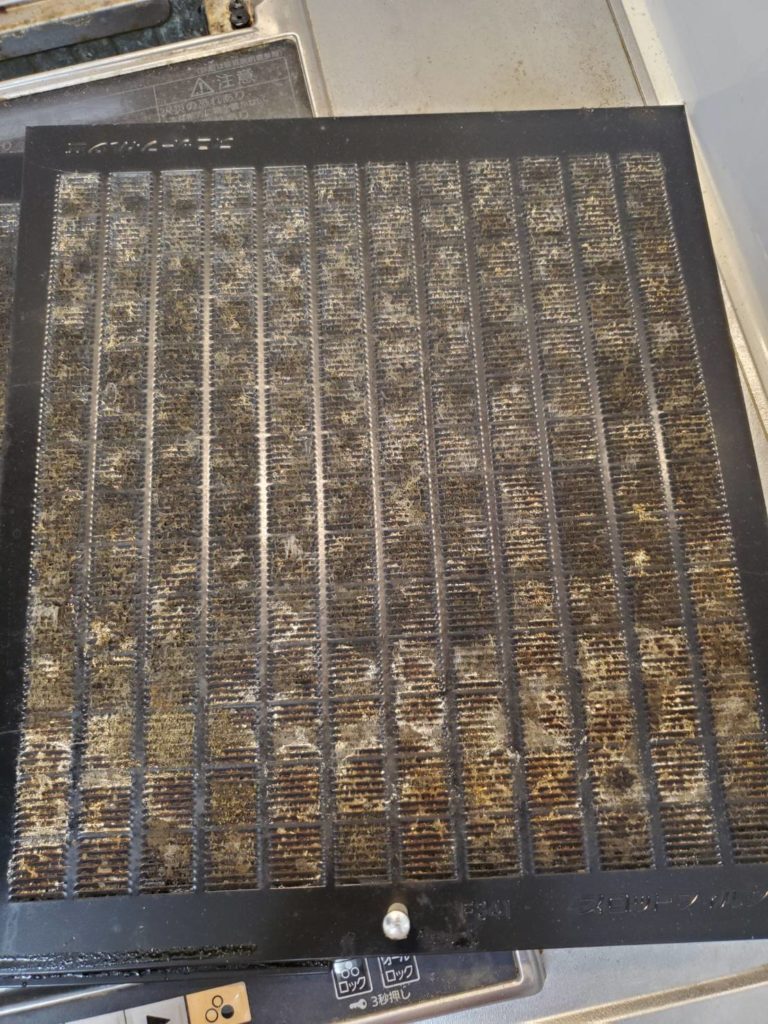 換気扇フィルター 油汚れの上にカビがいっぱい……💦
